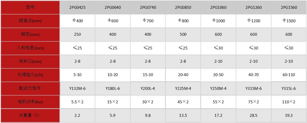 對(duì)輥破碎機(jī)參數(shù)