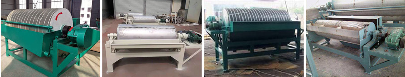 在磁場(chǎng)強(qiáng)力的作用下,強(qiáng)磁性礦物被吸附在筒體表面上,隨筒體旋轉(zhuǎn)到精礦排礦口,脫離磁體后借助清水作用排入精礦箱,脈石和弱磁性礦物在槽體內(nèi)礦漿流的作用下,逆筒體旋轉(zhuǎn)方向進(jìn)入排礦管。