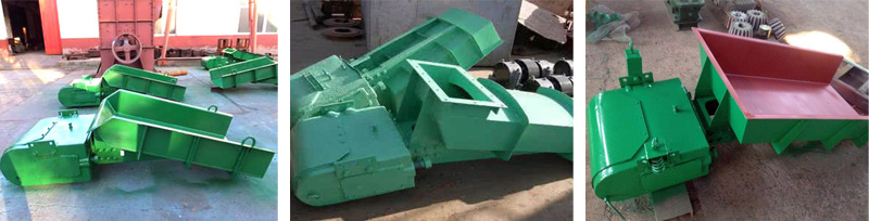 主要利用電磁激振器驅動槽體以定的傾角做往復振動,使物料沿槽移動。在交流電的正半周,脈動電流流過線圈,在鐵芯和銜鐵之間產生一脈動電磁吸力,使槽體向后運動,激振器的主彈簧發(fā)生變形,儲存勢能;